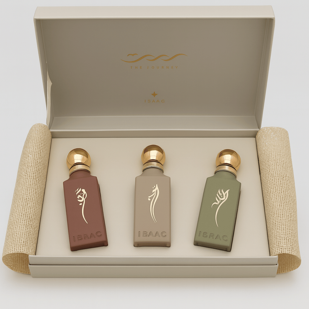 The Ibraq Mini Irth Collection is a curated trio of unisex fragrances that feels like an olfactory journey through the heart of the desert — from the seed of beginnings, through the oasis shade, to the ripe, warm fruit of abundance. Each mini bottle (20 ml) tells a distinct story of life, nature, and resilience inspired by the iconic desert palm.